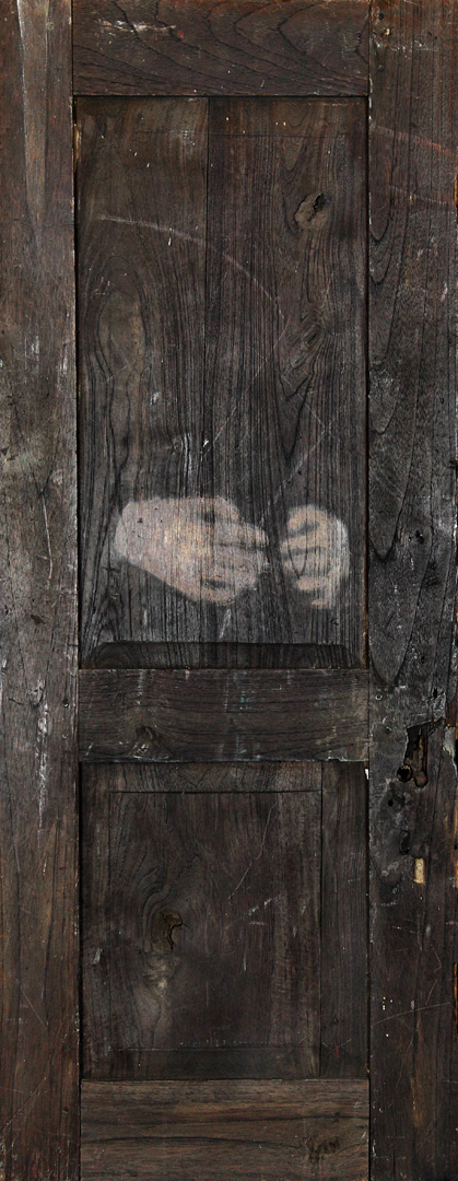 Acrylic, wood stain on door