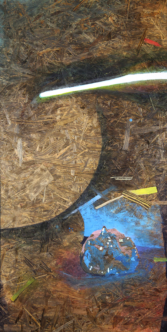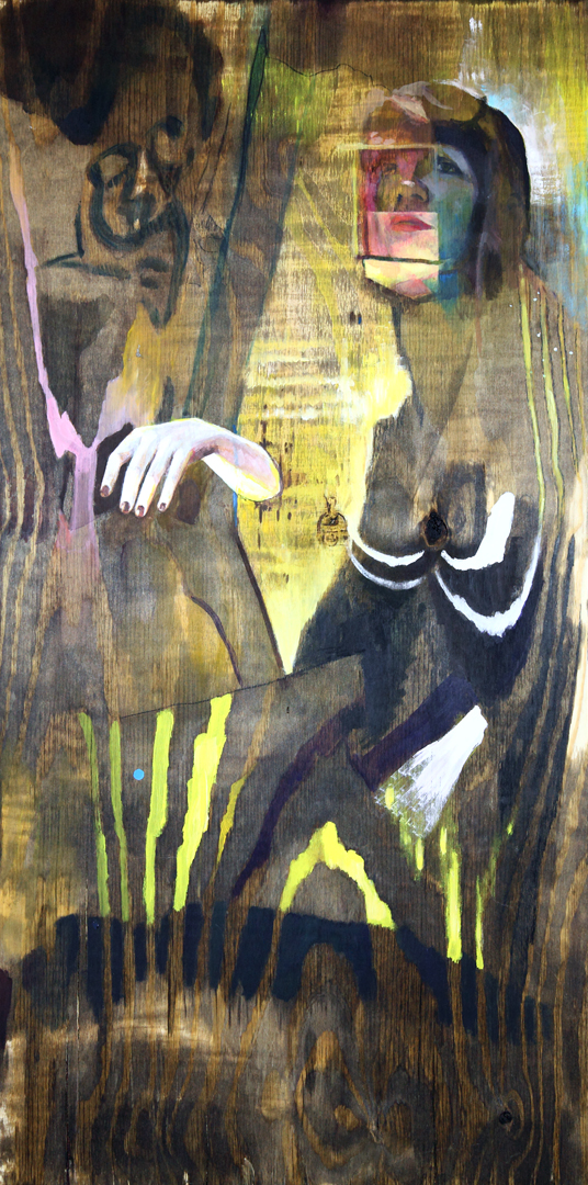 Acrylic, wood stain on canvas